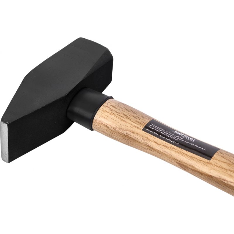 Model KD252 został wykonany z wysokiej jakości materiałów, co przekłada się na jego trwałość i niezawodność. Głowica ze stali zapewnia odporność na uszkodzenia mechaniczne, natomiast trzonek z mocnego drewna gwarantuje wytrzymałość oraz stabilny chwyt. Zewnętrzna warstwa trzonka została odpowiednio zaimpregnowana, co zwiększa odporność na warunki atmosferyczne i wydłuża żywotność narzędzia. Duża masa 2 kg oraz długi trzonek pozwalają uzyskać silne, precyzyjne uderzenia.