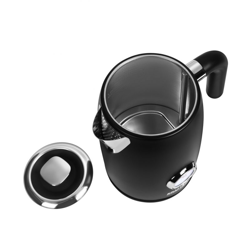 Urządzenie wyposażono w zdejmowaną pokrywę ułatwiającą napełnianie i czyszczenie, automatyczny wyłącznik bezpieczeństwa oraz zabezpieczenie przed przegrzaniem (Boil Dry Protection). Obracana o 360 stopni podstawka zapewnia wygodę użytkowania niezależnie od strony podłączenia do sieci.
