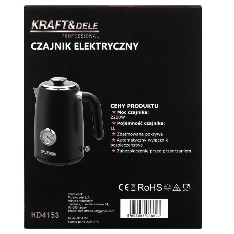 Czajnik elektryczny KRAFT&DELE KD4153 pozwala szybko zagotować wodę w komfortowy i bezpieczny sposób. Dzięki pojemności 1L idealnie sprawdzi się w każdym domu lub biurze, a wskaźnik temperatury pozwoli kontrolować temperaturę zagotowanej wody