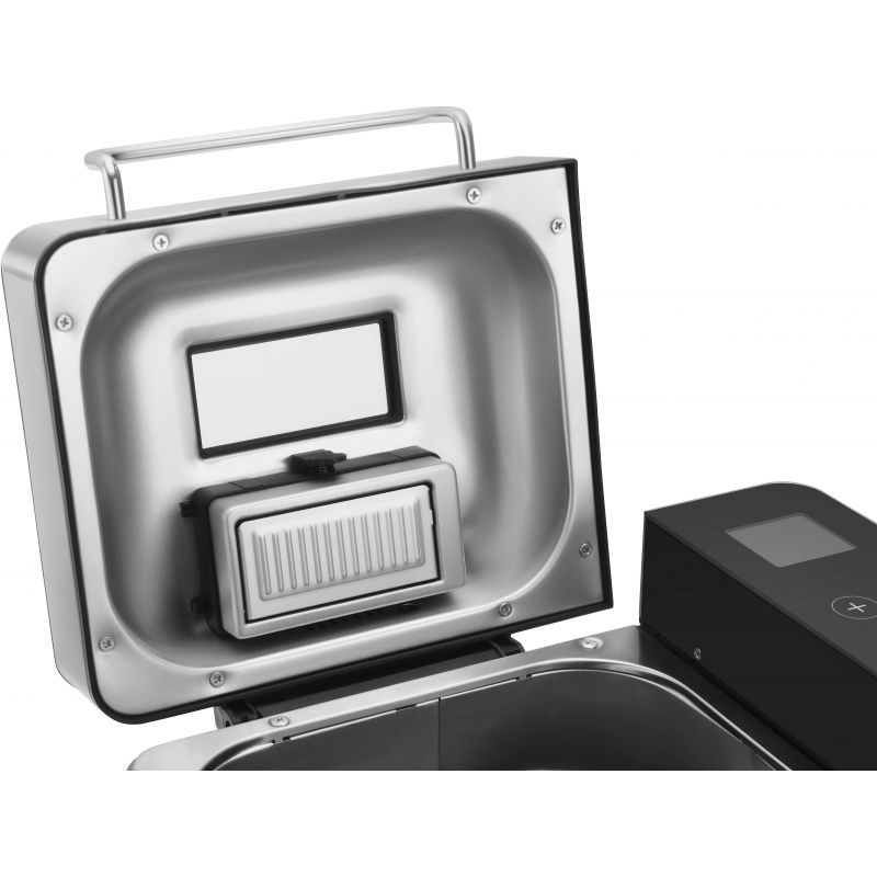 Model KD4220 został wyposażony w dotykowy panel sterowania oraz wyświetlacz LCD obsługiwany mikrokomputerem, co zapewnia wygodną i intuicyjną obsługę. Do dyspozycji użytkownika oddano aż 19 programów pracy, możliwość wyboru koloru skórki oraz ustawienia wielkości wypieku 500g, 750g lub 1000g. Dodatkowym atutem jest automatyczny dozownik owoców, wewnętrzne oświetlenie oraz szklane okienko, dzięki którym można na bieżąco monitorować cały proces przygotowania wypieku. Wyciągana misa z nieprzywierającą powłoką ułatwia wyjmowanie gotowego produktu i czyszczenie urządzenia. Wypiekacz posiada przycisk funkcji pauzy.