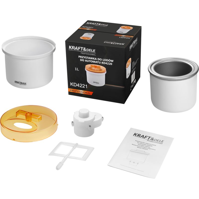 KD4221 to praktyczna przystawka do przygotowywania domowych lodów, przeznaczona do współpracy z automatem do chleba KRAFT&DELE KD4220. Dzięki niej możesz w prosty sposób przygotować świeże, domowe desery mrożone, dostosowane do własnych upodobań smakowych.