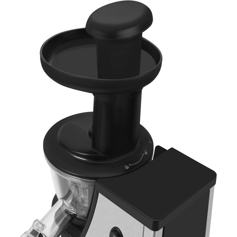 Urządzenie pracuje cicho i stabilnie, a dwa kierunki pracy silnika ułatwiają usuwanie zablokowanych składników. Filtr ze stali nierdzewnej zapewnia skuteczne oddzielanie soku od pulpy, a pojemnik na odpadki o pojemności 1 litra ogranicza konieczność częstego opróżniania. Antypoślizgowe stopki oraz system zabezpieczenia Safety Lock zwiększają bezpieczeństwo podczas pracy.