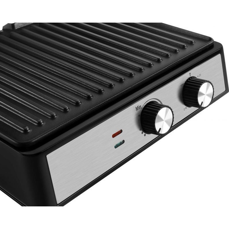 Dzięki wysokiej mocy 2400W grill bardzo szybko osiąga odpowiednią temperaturę pracy, co znacząco skraca czas przygotowywania posiłków. Wbudowany termostat oraz timer pozwalają precyzyjnie kontrolować proces grillowania, a lampki kontrolne informują o nagrzewaniu i gotowości urządzenia do pracy.