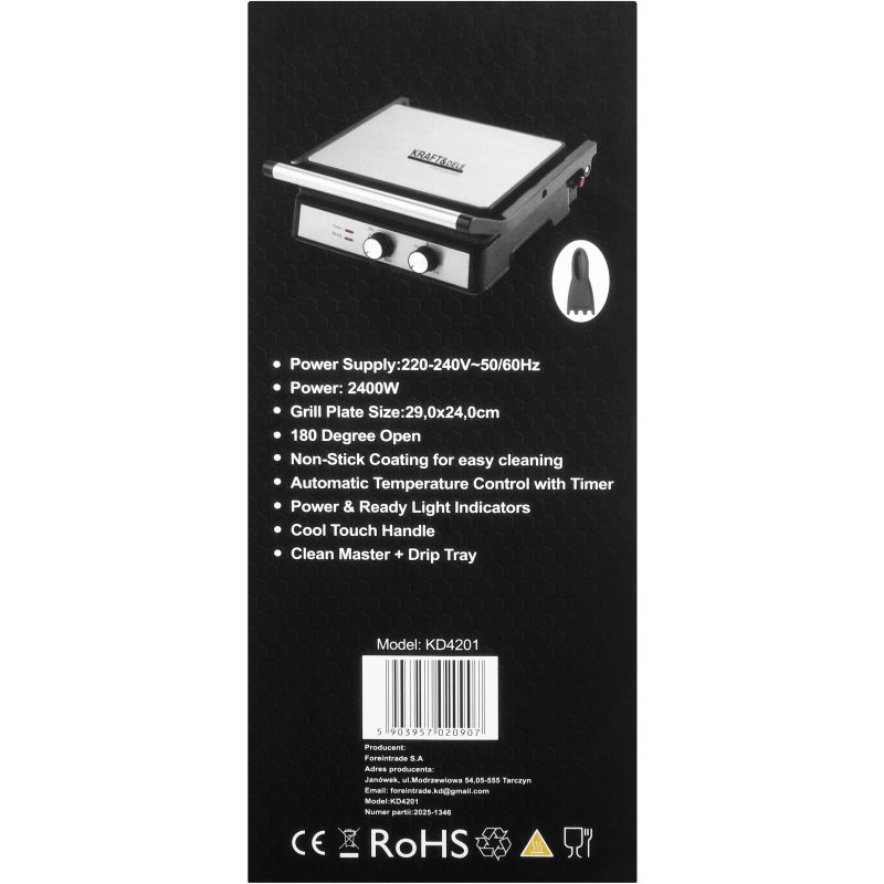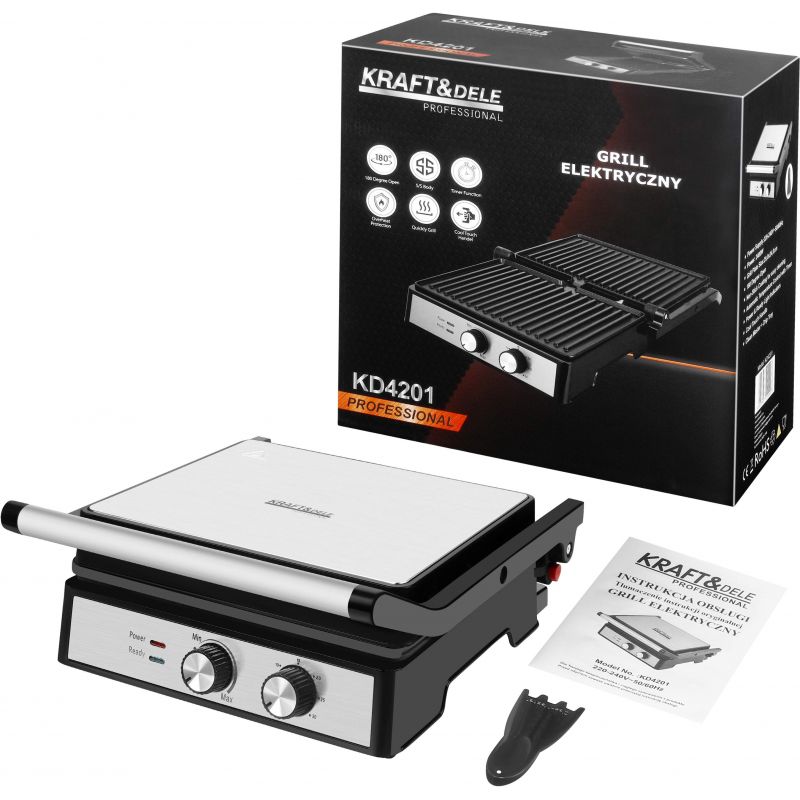 grill elektryczny; opiekacz do kanapek; grill kontaktowy; grill 180 stopni; grill z termostatem; grill z timerem; opiekacz elektryczny; grill do mięsa i warzyw; grill 2400w; kraftdele kd4201;