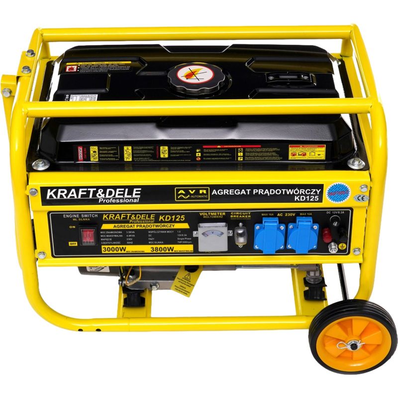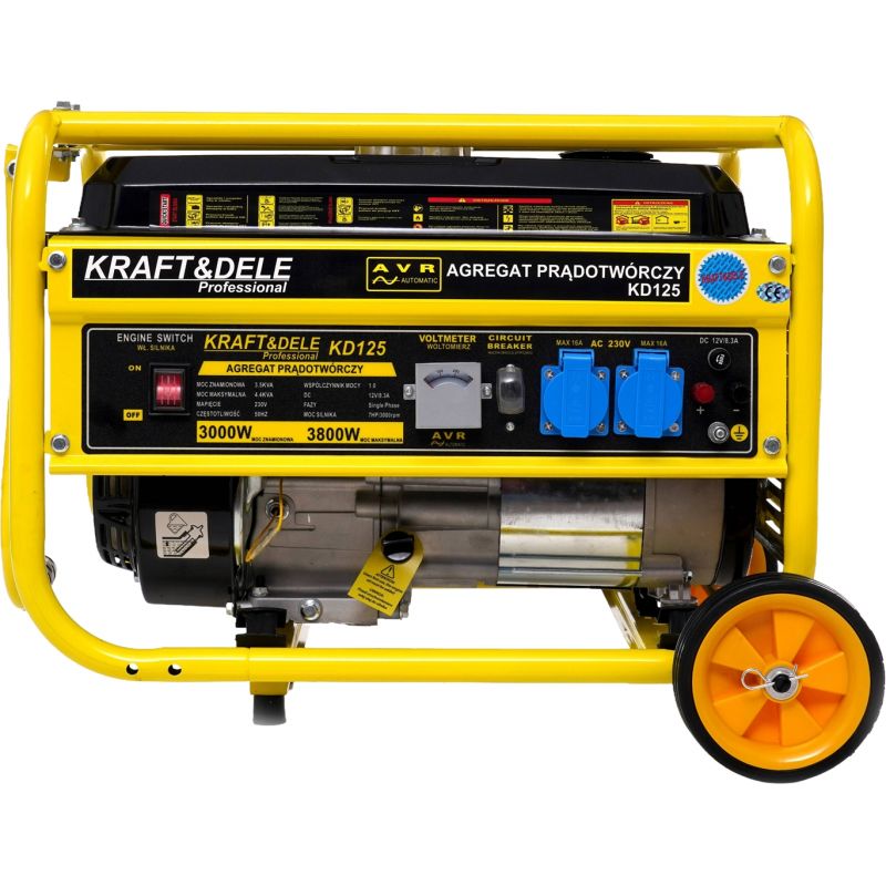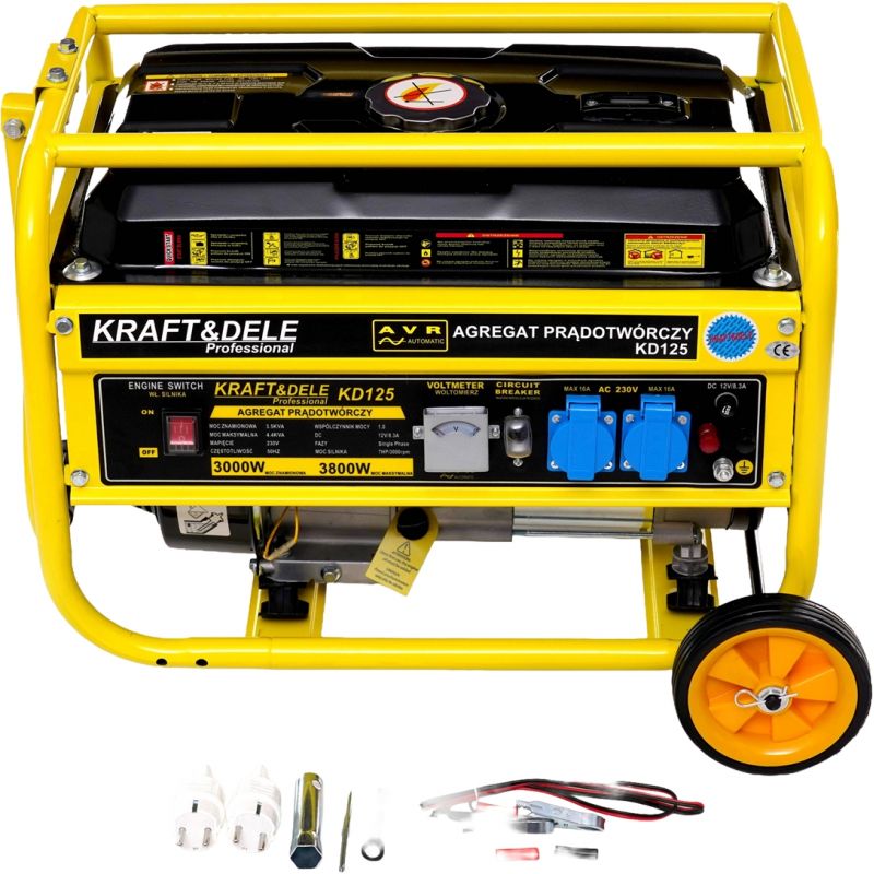 agregat prądotwórczy; generator prądu; agregat 3800W; agregat benzynowy; generator 230V; agregat jednofazowy; agregat na działkę; agregat awaryjny; agregat Kraft&Dele; KD125;