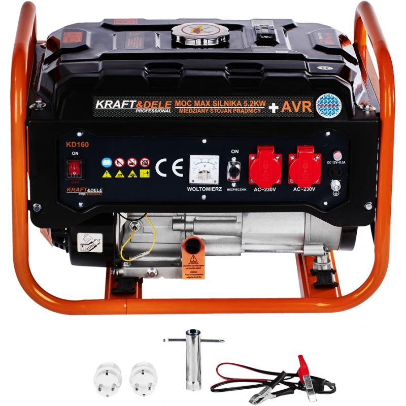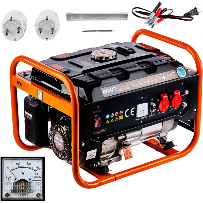 agregat prądotwórczy 3500W; generator prądu 230V 12V; agregat benzynowy 3,5kW; przenośny generator prądu; agregat do domu i na budowę; agregat awaryjny 230V; generator prądu Kraft&Dele KD160; agregat jednofazowy z wyjściem 12V;