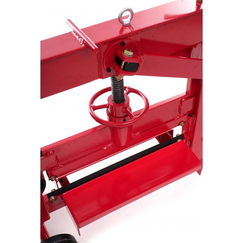 Płynna regulacja wysokości cięcia w zakresie od 10 do 140 mm oraz łatwa regulacja szczeliny za pomocą centralnego, gwintowanego trzpienia pozwalają na szybkie dostosowanie gilotyny do obrabianego materiału. Dwa stabilne koła transportowe ułatwiają przemieszczanie urządzenia na placu budowy, a sprężynowe nakładki poprawiają komfort i bezpieczeństwo pracy.