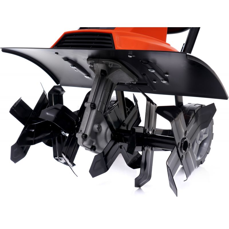Zastosowanie silnika elektrycznego sprawia, że glebogryzarka jest lekka, cicha i wygodna w użytkowaniu. Kompaktowa konstrukcja oraz odpowiednio dobrane komponenty umożliwiają łatwe manewrowanie bez konieczności używania dużej siły. Korpus wykonany z wysokiej jakości tworzywa sztucznego skutecznie chroni urządzenie przed uderzeniami kamieni i innymi przeszkodami, zwiększając trwałość sprzętu.