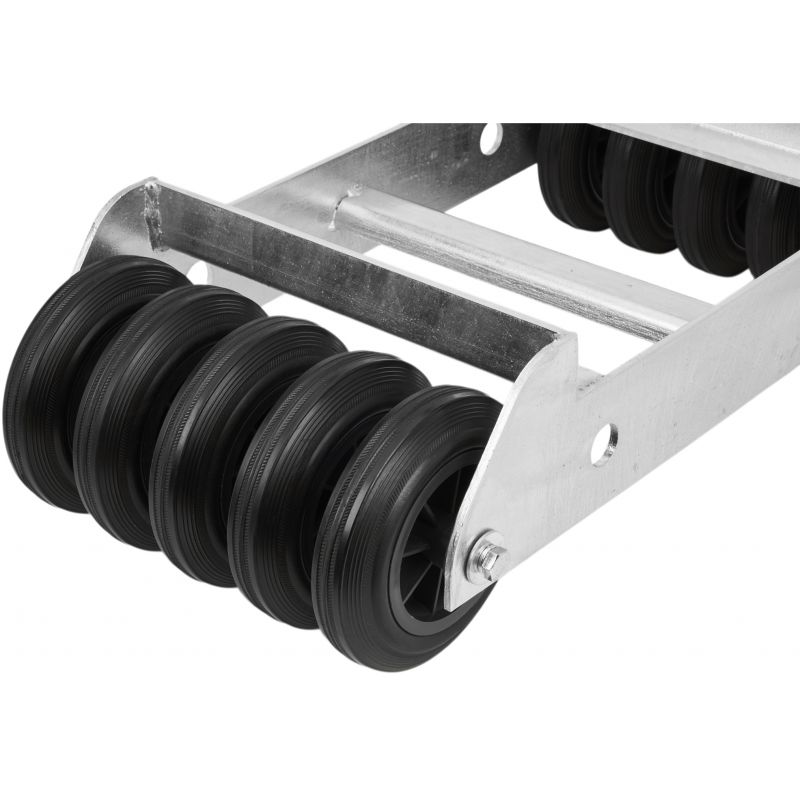 Model KD3200 sprawdzi się również w użytku prywatnym – ułatwia manewrowanie pojazdem w garażu, warsztacie lub podczas wciągania auta na lawetę. Wzmocniona konstrukcja z blachy o grubości 6 mm zapewnia wysoką nośność statyczną do 1200 kg, a cynkowanie ogniowe skutecznie chroni ramę przed korozją nawet przy intensywnym użytkowaniu. Zastosowanie aż 10 kół gumowo-poliamidowych gwarantuje płynny ruch, stabilność oraz równomierne rozłożenie obciążenia. Wałek oparty bezpośrednio na ramie zapobiega przechylaniu wózka na boki, zwiększając bezpieczeństwo pracy.