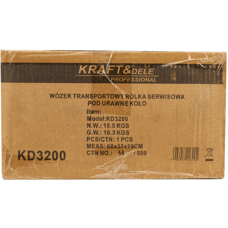 KD3200 to solidny wózek transportowy marki KRAFT&DELE, zaprojektowany do sprawnego przemieszczania pojazdów z uszkodzonym lub urwanym kołem. Rolka warsztatowa znacząco skraca czas pracy i ułatwia załadunek oraz rozładunek pojazdów, zarówno w warunkach warsztatowych, jak i w terenie. Znajduje szerokie zastosowanie w transporcie samochodowym, pomocy drogowej, u laweciarzy, w warsztatach, serwisach i zakładach blacharskich.