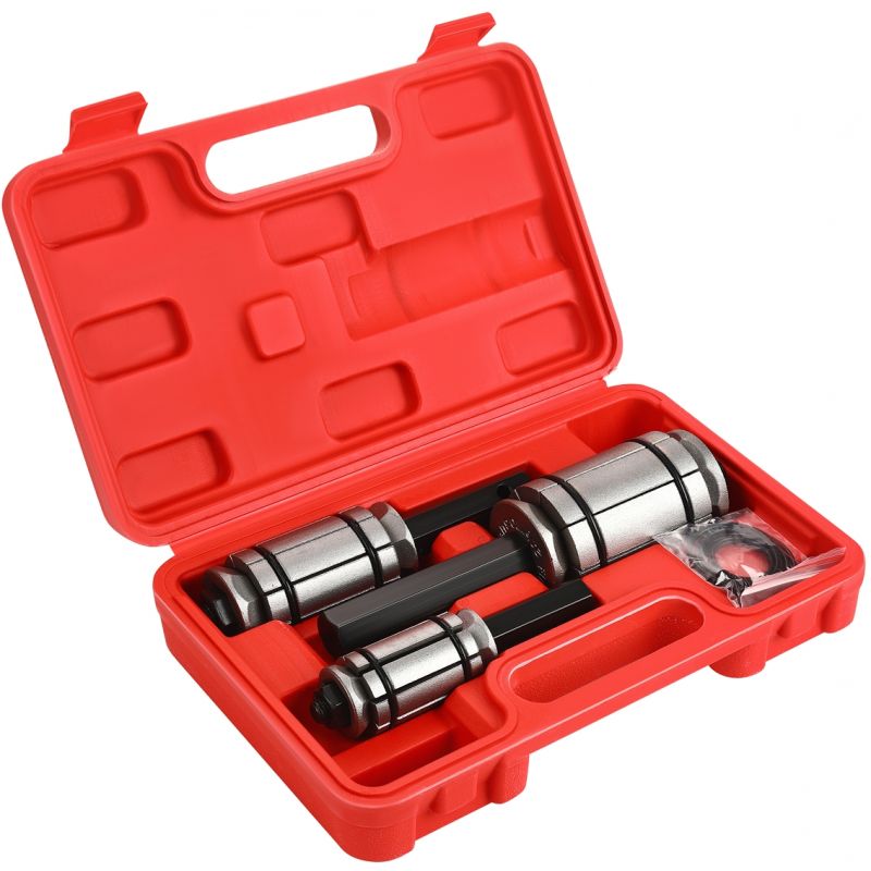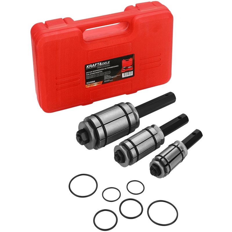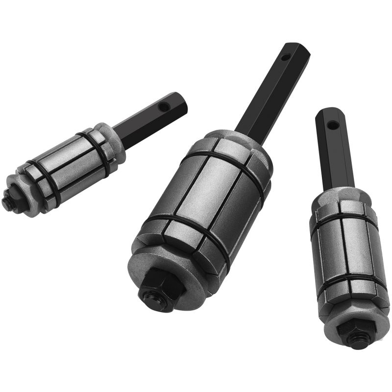 Zestaw idealnie sprawdzi się w profesjonalnych warsztatach samochodowych, serwisach oraz podczas domowych napraw. Trzy różne rozmiary rozpieraków pozwalają na pracę z rurami o zróżnicowanych średnicach, zapewniając dokładne i bezpieczne dopasowanie bez ryzyka uszkodzenia materiału. Solidna stalowa konstrukcja gwarantuje trwałość oraz odporność na duże obciążenia, a praktyczna walizka ułatwia przechowywanie i transport całego kompletu.