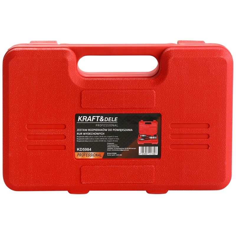 KD5984 to praktyczny zestaw rozpieraków do rur wydechowych marki KRAFT&DELE, przeznaczony do precyzyjnego rozszerzania końcówek rur oraz dopasowywania ich średnicy podczas montażu i napraw układów wydechowych. Narzędzie umożliwia szybkie rozwalcowywanie rur bez konieczności nagrzewania materiału czy wykonywania spawów, co znacznie usprawnia pracę.