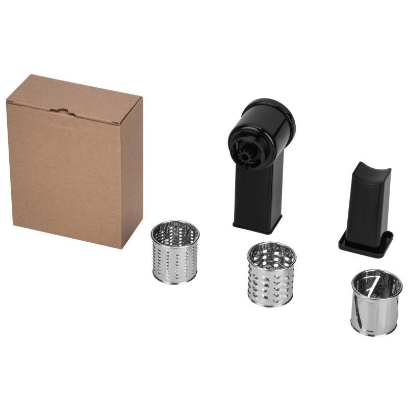 ▶ W zestawie znajduje się szatkownica z trzema wymiennymi bębnami do krojenia i siekania warzyw.