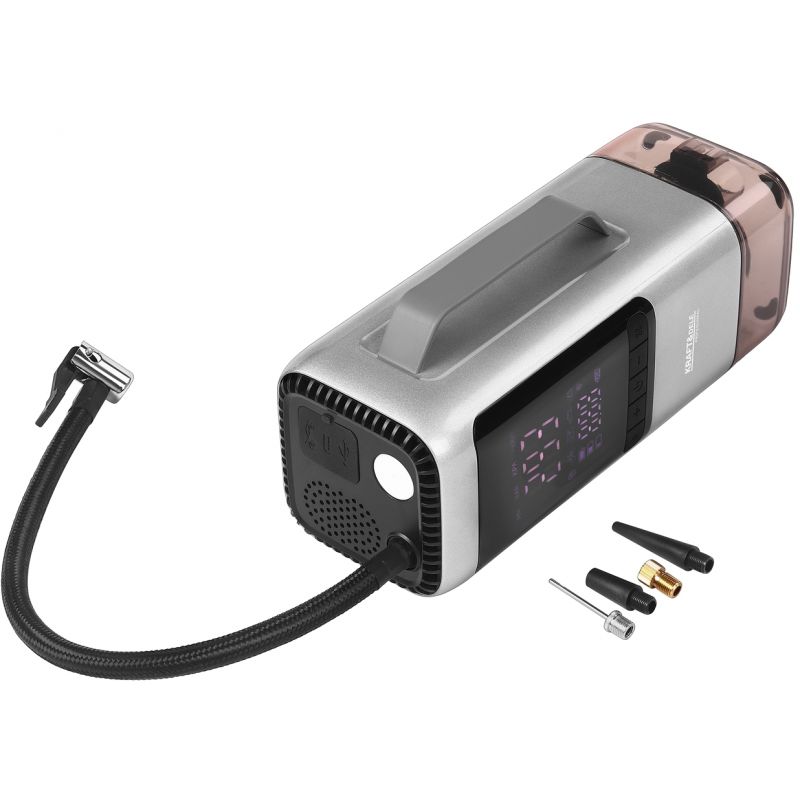Urządzenie KD5498 pozwala szybko napompować opony rowerowe i samochodowe, uruchomić samochód w nagłych sytuacjach, odkurzyć wnętrze auta, a także zasilić telefon lub inne urządzenia elektroniczne. Latarka LED dodatkowo ułatwia pracę w ciemnych miejscach, a wbudowany wyświetlacz i możliwość wyboru jednostek ciśnienia (PSI, BAR, KPA, KG/CM²) zapewniają precyzyjne i bezpieczne działanie.