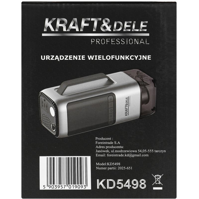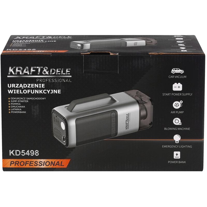 KD5498 to wszechstronne, przenośne urządzenie wielofunkcyjne marki KRAFT&DELE, które łączy w sobie funkcje pompki, jump startera, odkurzacza samochodowego, dmuchawy, powerbanku oraz latarki LED. Dzięki kompaktowej konstrukcji i dużej pojemności akumulatora 10 000 mAh urządzenie jest idealnym wsparciem w podróży, podczas awarii samochodu oraz w codziennym użytkowaniu.