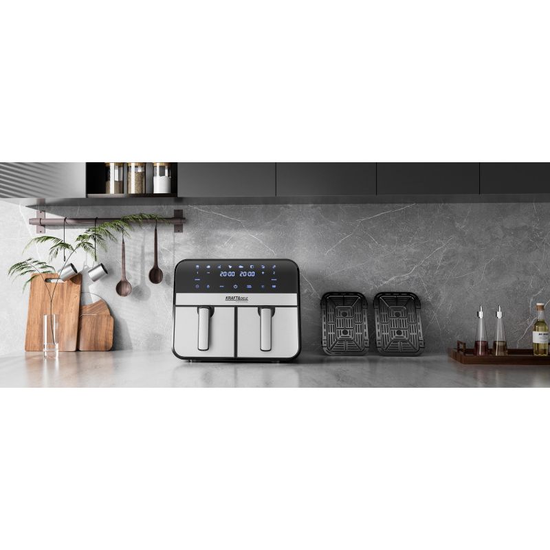 AirFryer 9L to zaawansowana frytkownica beztłuszczowa wyposażona w dwie niezależne komory po 4,5 litra każda, co umożliwia przygotowanie dwóch różnych potraw jednocześnie. Idealna dla rodzin, osób dbających o zdrowie oraz wszystkich, którzy chcą gotować szybciej, wygodniej i z minimalną ilością tłuszczu.