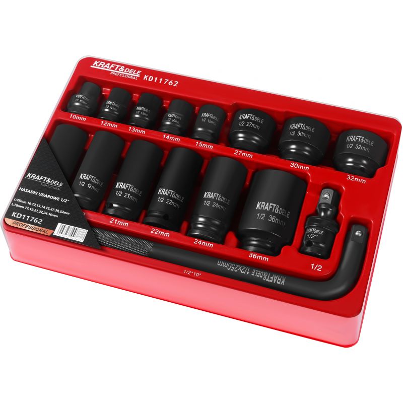 KD11762 marki KRAFT&DELE to profesjonalny zestaw nasadek udarowych przeznaczony do pracy z urządzeniami pneumatycznymi w wymagających warunkach. Idealny dla serwisów ogumienia, warsztatów samochodowych oraz użytkowników oczekujących maksymalnej trwałości i niezawodności.