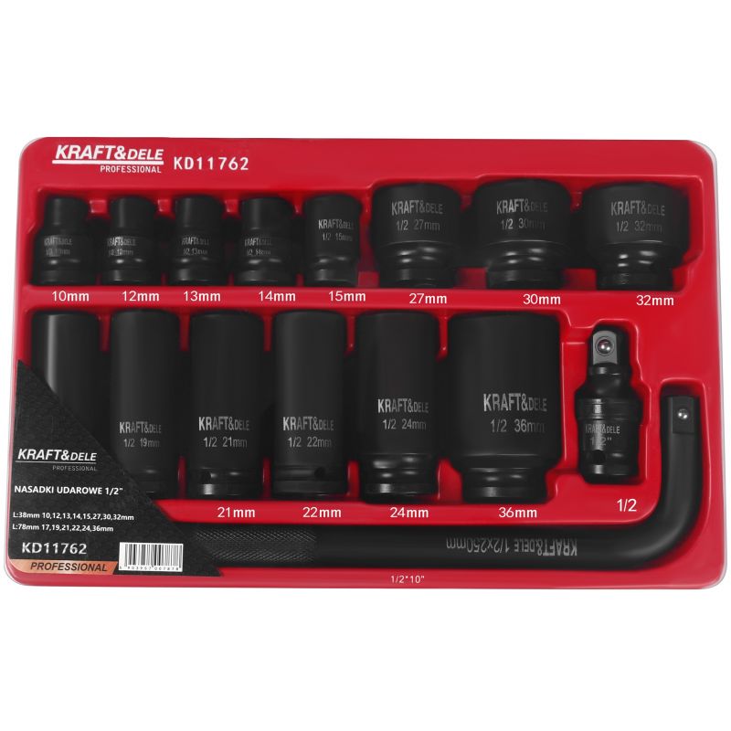 nasadki udarowe; zestaw nasadek udarowych; nasadki pneumatyczne; nasadki 1/2 cala; zestaw Cr-Mo; KD11762; nasadki do klucza udarowego; nasadki warsztatowe; zestaw do wulkanizacji; nasadki sześciokątne;