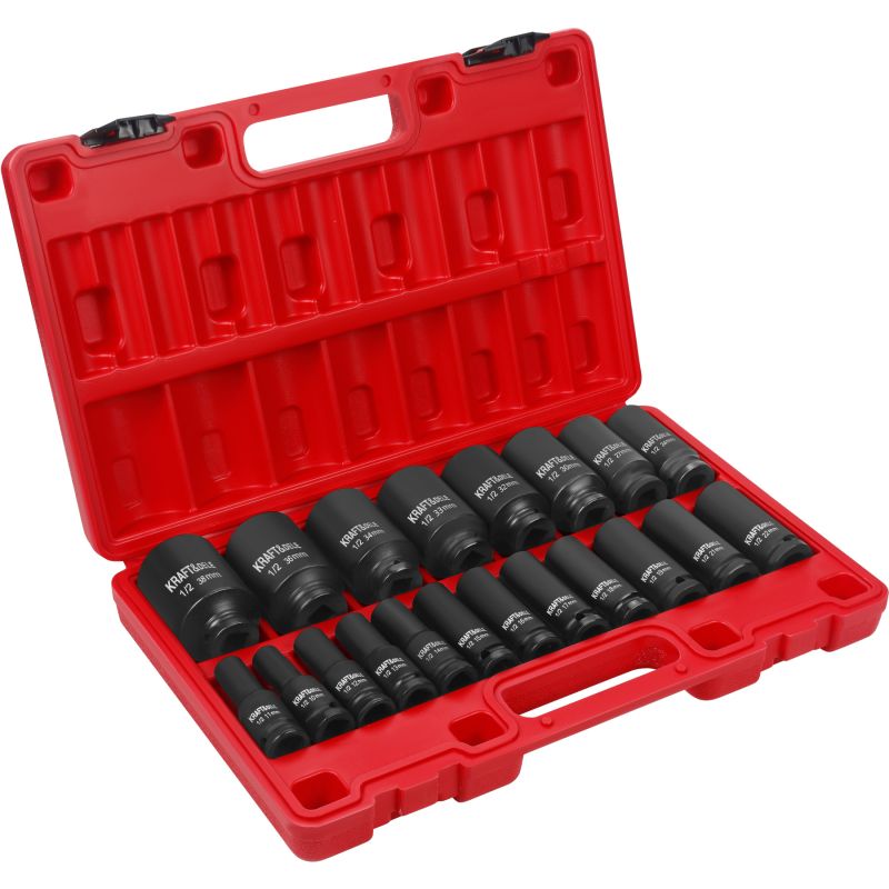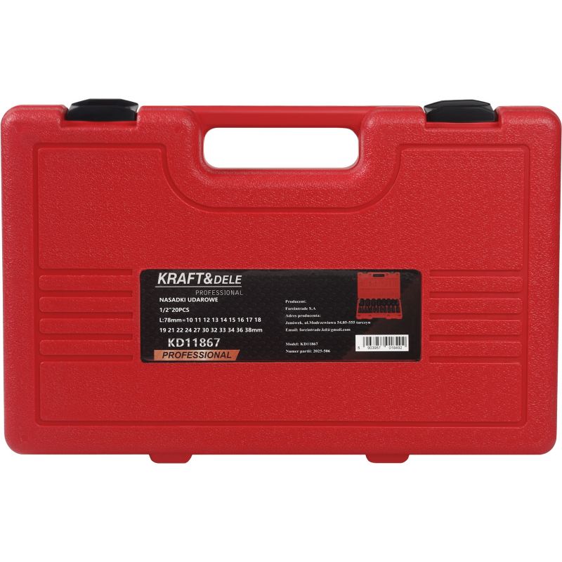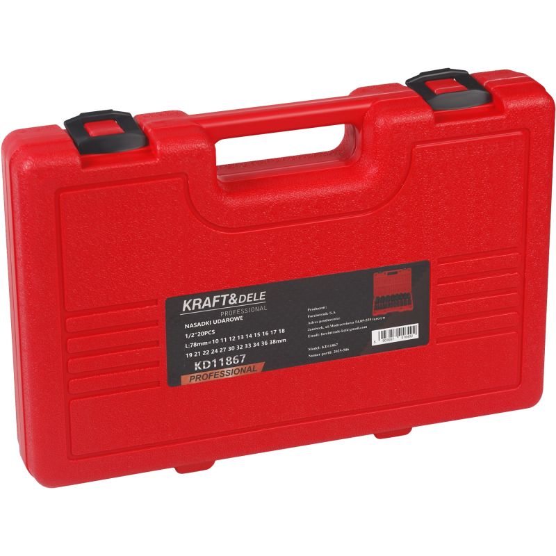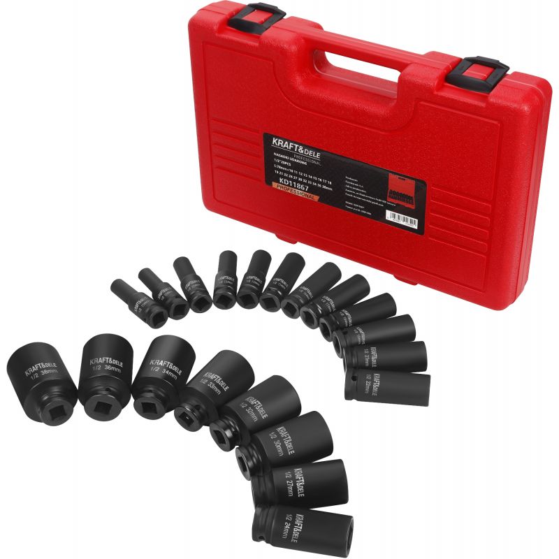 KD11867 to profesjonalny zestaw nasadek udarowych marki KRAFT&DELE, przeznaczony do pracy z kluczami udarowymi oraz innymi narzędziami pneumatycznymi i elektrycznymi. Zestaw obejmuje aż 20 elementów, pozwalając na szerokie zastosowanie w warsztatach samochodowych, serwisach, jak i podczas prac montażowych. Wszystkie nasadki wykonane zostały z mocnej, odpornej na obciążenia stalistali chromowo-molibdenowej (Cr-Mo), dzięki czemu sprawdzają się podczas wymagającej pracy.