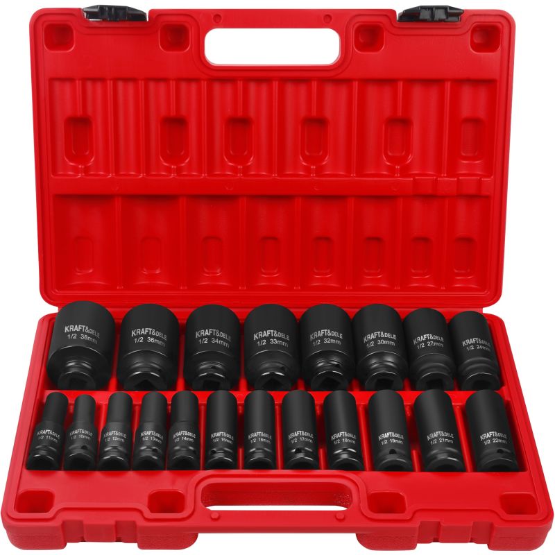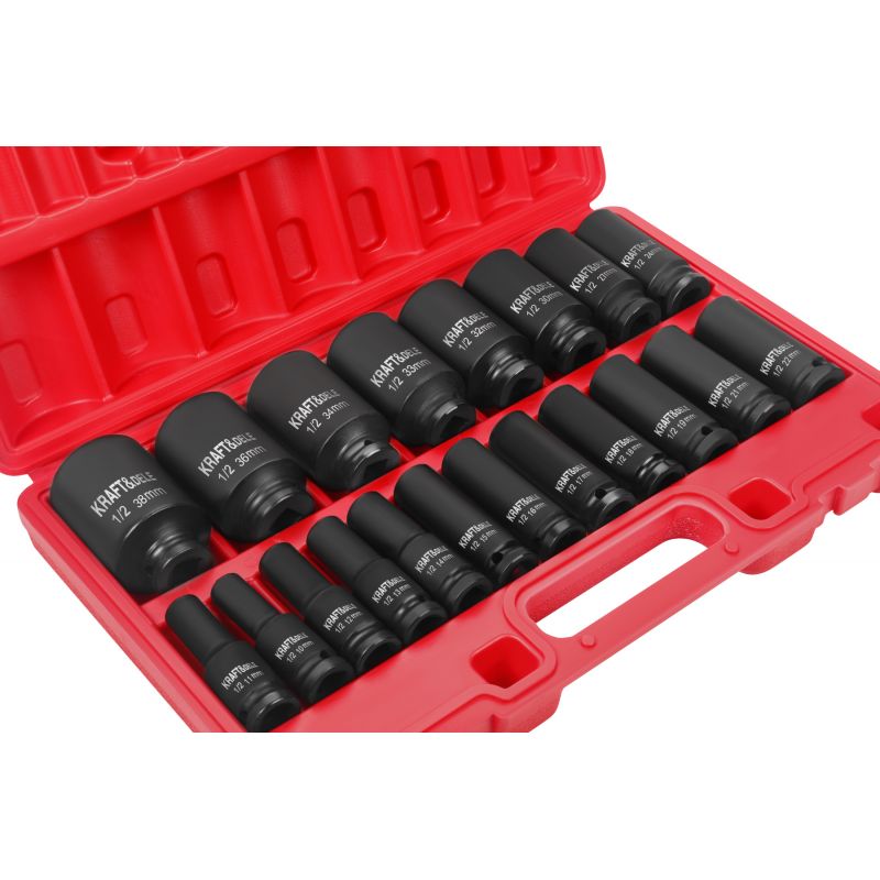 nasadki udarowe; zestaw nasadek; nasadki 1/2 cala; komplet nasadek udarowych; nasadki długie; klucz udarowy nasadki; nasadki 10-38mm;