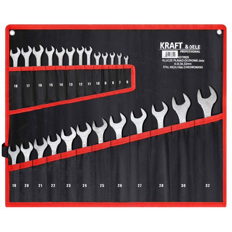 KD10920 to praktyczny zestaw kluczy płasko-oczkowych marki KRAFT&DELE, który sprawdzi się podczas prac serwisowych, montażowych oraz naprawczych. Komplet obejmuje 25 kluczy w najpopularniejszych rozmiarach od 6 do 32 mm, dzięki czemu umożliwia wygodną pracę zarówno w profesjonalnym warsztacie, jak i w garażu czy podczas domowych napraw.