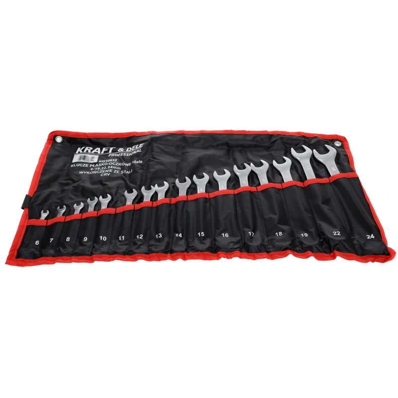 KD10932 to wysokiej jakości zestaw kluczy płasko-oczkowych marki KRAFT&DELE przeznaczony do prac serwisowych, montażowych oraz naprawczych. Zestaw obejmuje 16 kluczy w praktycznym zakresie rozmiarów od 6 do 24 mm, co pozwala na wygodną pracę zarówno w warsztacie samochodowym, jak i w przydomowym garażu czy podczas codziennych prac technicznych.