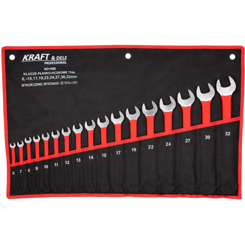 KD11050 to wysokiej jakości zestaw kluczy płasko-oczkowych marki KRAFT&DELE przeznaczony do prac montażowych, serwisowych oraz naprawczych. Zestaw obejmuje 17 kluczy w popularnych rozmiarach od 6 do 32 mm, dzięki czemu sprawdzi się zarówno w warsztacie mechanicznym, garażu, jak i podczas domowych prac technicznych.