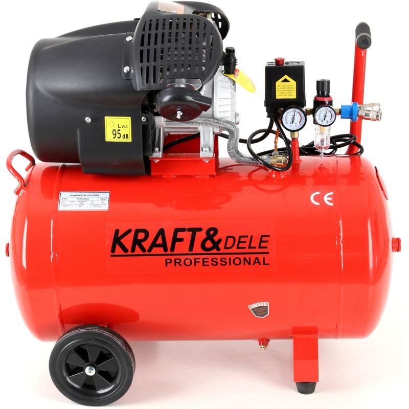 Kompresor olejowy; sprężarka olejowa 100L; kompresor dwutłokowy; sprężarka 2 tłoki; kompresor warsztatowy; sprężarka pneumatyczna; kompresor Kraft&Dele KD1483;