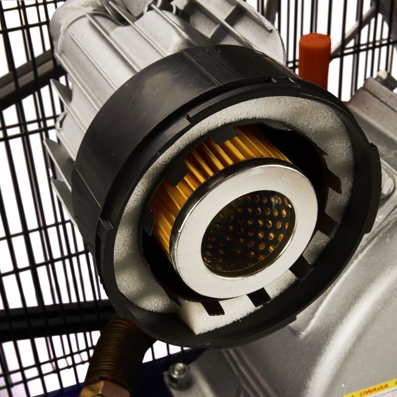 Powiększona średnica elementów roboczych wpływa na wysoką wydajność przepływu powietrza oraz ogranicza ryzyko blokowania się nieczystości. Wbudowany separator zatrzymuje olej i wodę w wydmuchiwanym powietrzu, a system chłodzenia powietrzem wraz z dużą turbiną chłodzącą wspiera stabilną i cichszą pracę urządzenia.