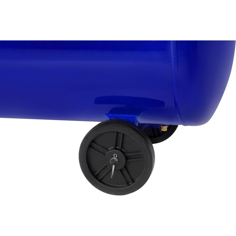 Urządzenie wyposażone jest w podwójny presostat z manometrami umożliwiającymi kontrolę ciśnienia na poszczególnym wyjściu roboczym, zawór spustowy do odprowadzania kondensatu oraz duże koła transportowe ułatwiające przemieszczanie.