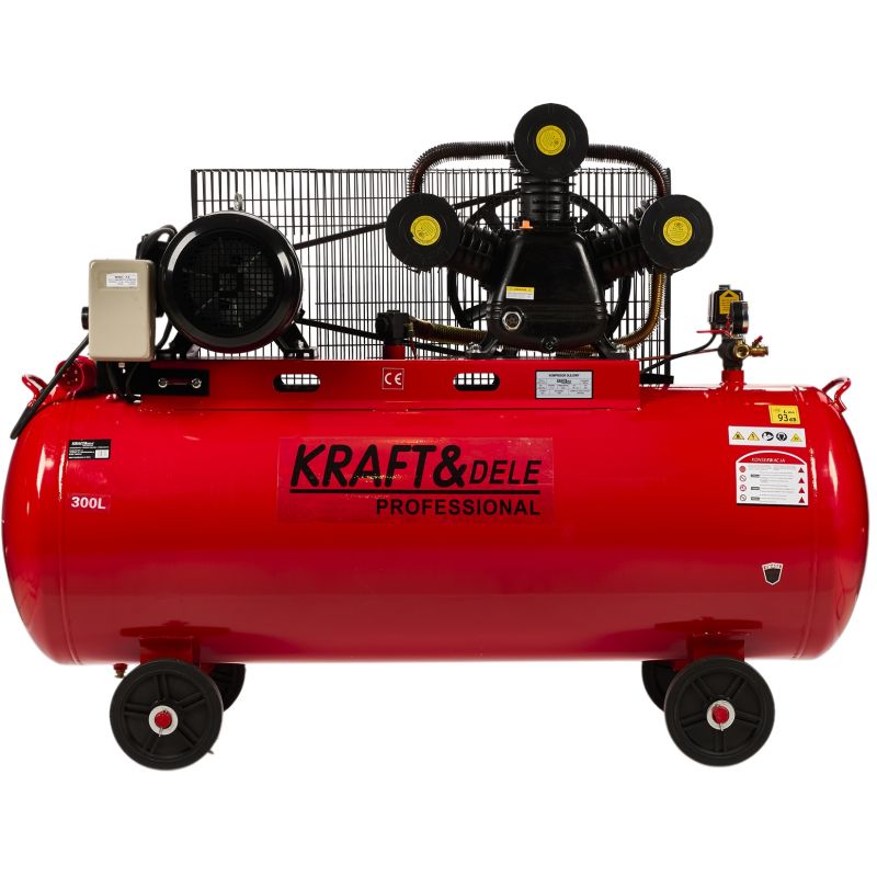 Kompresor olejowy 300L; sprężarka 300l 400V; kompresor trójtłokowy; kompresor 12,9KM; kompresor 9,6kW; sprężarka warsztatowa 300L; kompresor paskowy; kompresor przemysłowy 400V; kompresor z separatorem; kompresor Kraft&Dele KD1411;