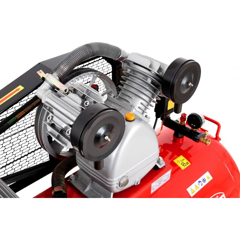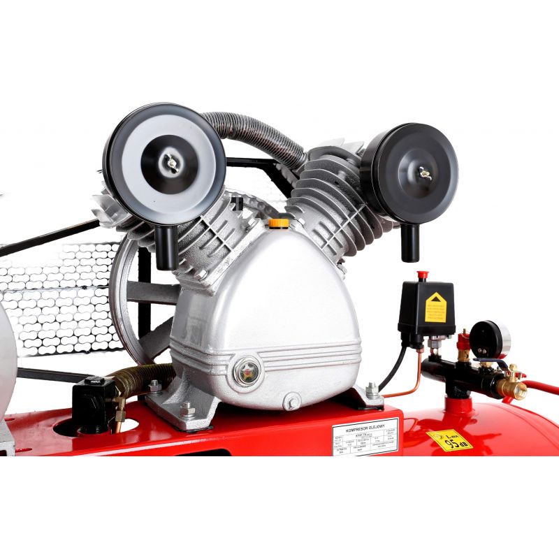 Sprężarka doskonale sprawdza się podczas obsługi narzędzi pneumatycznych takich jak pompowanie, przedmuchiwanie, czyszczenie czy malowanie powierzchni. Konstrukcja olejowa, wydajna pompa tłokowa oraz skuteczne chłodzenie powietrzem dzięki szerokiemu ożebrowaniu zapewniają stabilną pracę i efektywność działania. Wbudowany reduktor ciśnienia umożliwia precyzyjne ustawienie parametrów pracy, a dwa czytelne manometry pozwalają na wygodną kontrolę ciśnienia. Mobilność urządzenia zwiększają solidne koła transportowe, które ułatwiają przemieszczanie kompresora.