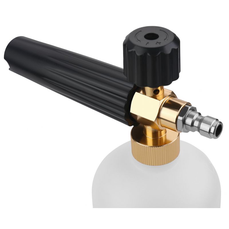 Dzięki pokrętłu regulacji łatwo dopasujesz gęstość piany do aktualnych potrzeb, co zwiększa efektywność mycia i oszczędza detergent. Solidna konstrukcja i wygodny uchwyt zapewniają komfort pracy oraz długotrwałe użytkowanie urządzenia.