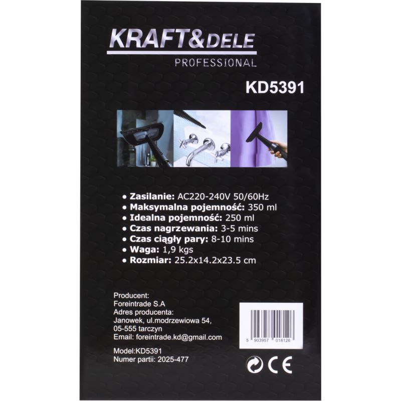 KD5391 to kompaktowa i wydajna myjka parowa marki KRAFT&DELE, przeznaczona do czyszczenia różnego rodzaju powierzchni za pomocą gorącej pary wodnej. Urządzenie doskonale usuwa zabrudzenia, tłuszcz, bakterie i wirusy bez użycia detergentów – jedynie za pomocą siły pary. Idealnie sprawdzi się w domu, warsztacie, kuchni, łazience, samochodzie czy przy czyszczeniu tapicerki.