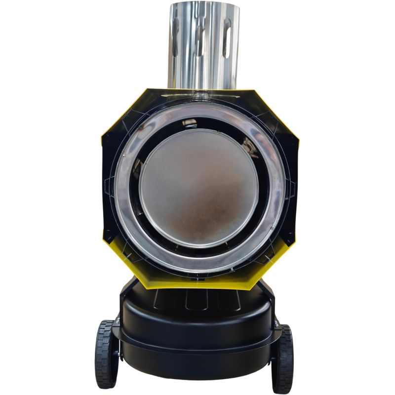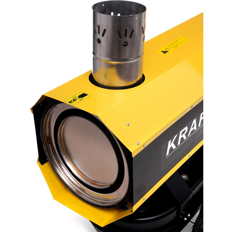 Model KD11717 wyposażony został w sterowanie temperatury z czytelnym wyświetlaczem cyfrowym, który umożliwia precyzyjne ustawienie pożądanej temperatury otoczenia. Nagrzewnica pracuje automatycznie, dostosowując swoje działanie do zadanej wartości. Dzięki zastosowaniu wymiennika ciepła spaliny są całkowicie odseparowane od ogrzewanego powietrza, co znacząco podnosi bezpieczeństwo użytkowania. Zamknięta komora spalania oraz wbudowany komin umożliwiają bezpieczne odprowadzanie spalin na zewnątrz, dzięki czemu urządzenie może być stosowane także w zamkniętych pomieszczeniach przy zachowaniu prawidłowej wentylacji.