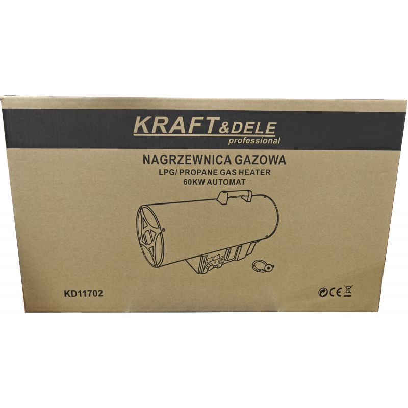 KD11702 to wydajna nagrzewnica gazowa marki KRAFT&DELE, przeznaczona do szybkiego i skutecznego ogrzewania dużych przestrzeni. Dzięki mocy 60 kW urządzenie doskonale sprawdza się w halach, warsztatach, magazynach, na placach budowy, w gospodarstwach rolnych oraz wszędzie tam, gdzie wymagane jest intensywne źródło ciepła przy zachowaniu wysokiej wydajności pracy.