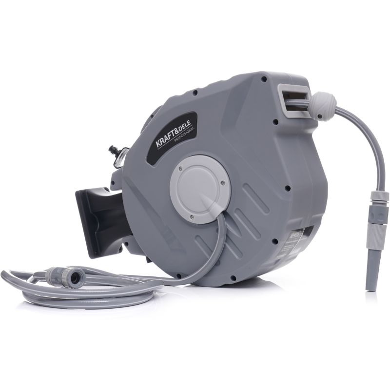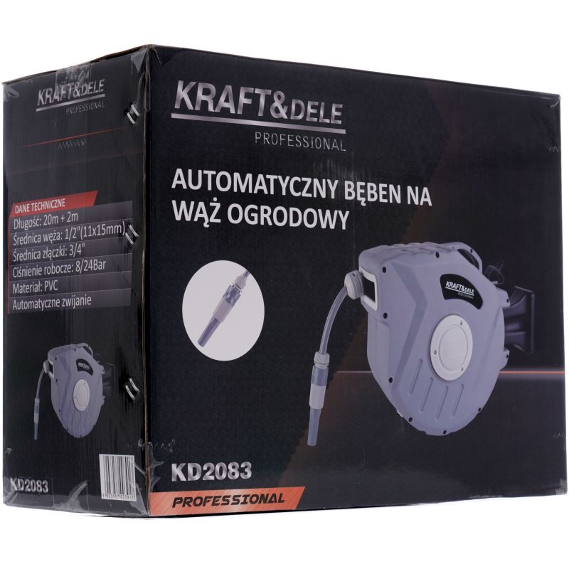 automatyczny bęben na wąż; zwijacz węża ogrodowego; bęben na wąż 20m; wąż ogrodowy 1/2 cala; bęben ścienny na wąż; akcesoria ogrodowe; Kraft&Dele KD2083;