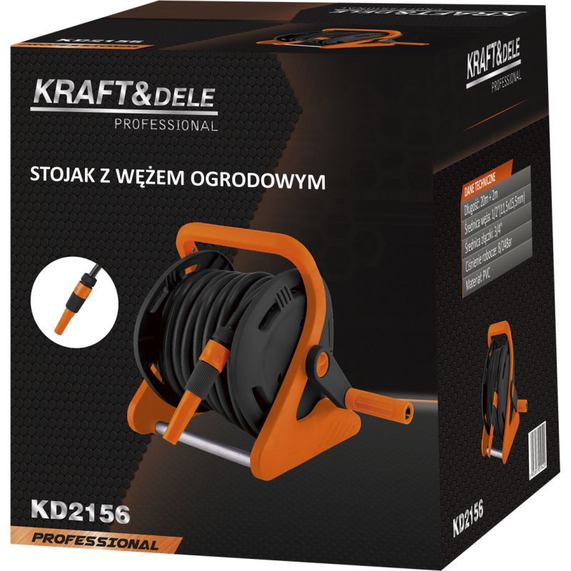 KD2156 to praktyczny stojak z wężem ogrodowym marki KRAFT&DELE, zaprojektowany z myślą o wygodnym podlewaniu oraz utrzymaniu porządku w ogrodzie. Zestaw wyposażony jest w wąż o długości 20 m + 2 m, co pozwala swobodnie dotrzeć do roślin, rabat i grządek, bez konieczności ciągłego przestawiania źródła wody.