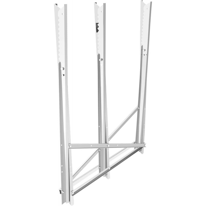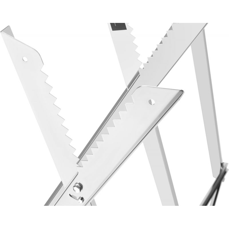 Regulowane ramiona umożliwiają dopasowanie rozstawu do długości i średnicy ciętego materiału. Składana konstrukcja pozwala na szybkie złożenie stojaka po zakończonej pracy, co ułatwia transport oraz przechowywanie w garażu, piwnicy lub bagażniku samochodu. Maksymalne obciążenie 120 kg zapewnia stabilność nawet przy pracy z cięższymi elementami.