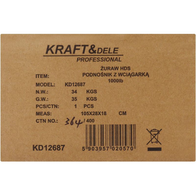 Żuraw warsztatowy HDS KD12687 marki Kraft&Dele to solidne i funkcjonalne urządzenie przeznaczone do podnoszenia oraz przemieszczania ciężkich ładunków, takich jak silniki, elementy konstrukcyjne czy sprzęt budowlany. Doskonale sprawdza się zarówno w warsztatach, jak i przy załadunku oraz rozładunku na samochodach dostawczych i przyczepach.
