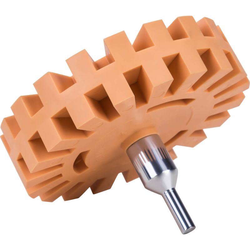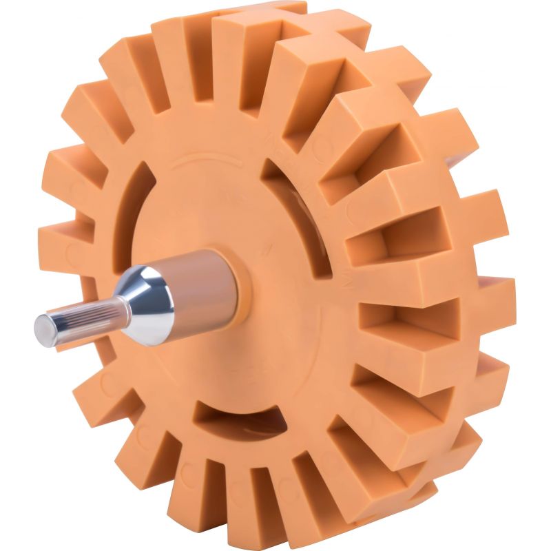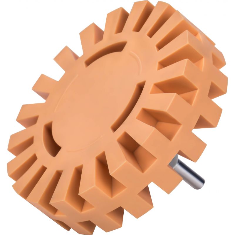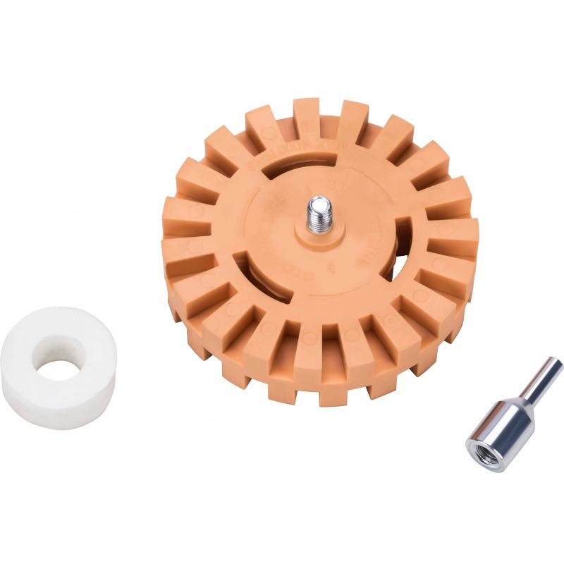 Podczas pracy krążek obraca się, delikatnie ścierając warstwę kleju bez uszkadzania powierzchni. Dzięki zastosowaniu wysokiej jakości gumy nie powoduje zarysowań oraz eliminuje konieczność używania środków chemicznych. Jest łatwy w montażu i obsłudze, a jego trwała konstrukcja pozwala na wielokrotne użytkowanie.