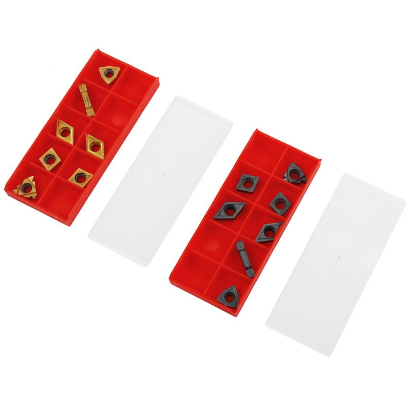 Noże charakteryzują się wysoką trwałością oraz twardością pręta około 45 HRC, co zapewnia długą żywotność i stabilność podczas pracy. Zestaw zawiera różnorodne typy noży i ostrzy, umożliwiające wykonywanie szerokiego zakresu operacji tokarskich w warsztacie.
