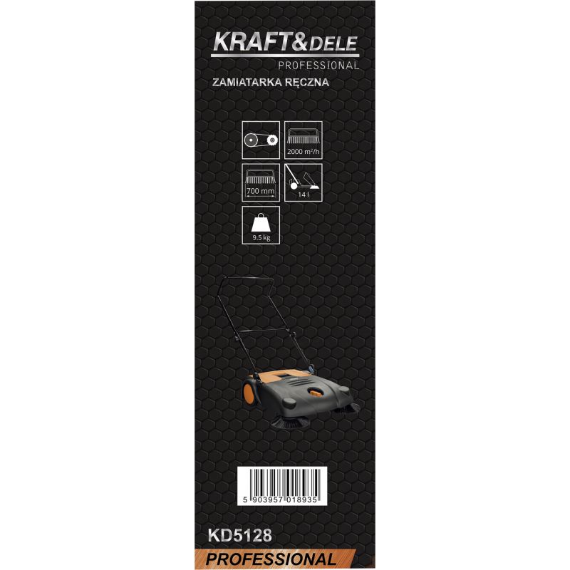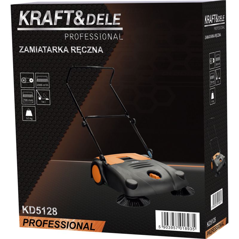 KD5128 to wysokowydajna zamiatarka ręczna marki KRAFT&DELE, przeznaczona do szybkiego i efektywnego zamiatania podwórek, chodników, ulic, ścieżek, alejek, magazynów oraz innych powierzchni roboczych. Dzięki szerokości roboczej 70 cm oraz dużej pojemności zbiornika urządzenie pozwala na sprawne sprzątanie nawet dużych obszarów bez konieczności częstego opróżniania.