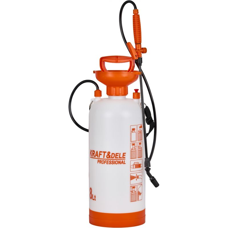 KD2034 to wydajny opryskiwacz ciśnieniowy marki KRAFT&DELE, przeznaczony do wygodnego rozprowadzania środków ochrony roślin, nawozów oraz wody. Idealnie sprawdzi się podczas prac w ogrodzie, na działce, w sadach, szklarniach i przy uprawach warzywnych, a także przy zadaniach porządkowych i czyszczeniu z użyciem wody lub detergentu. Pojemny zbiornik 8 litrów pozwala pracować dłużej bez częstego uzupełniania, co realnie przyspiesza oprysk większych powierzchni.