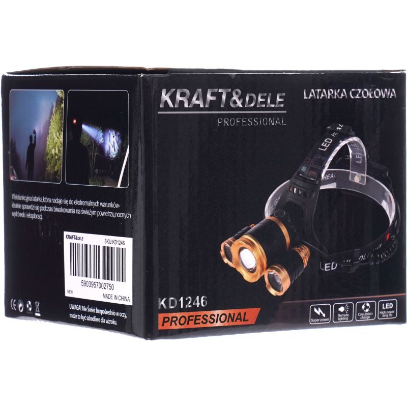 Model KD1246 wyposażono w wydajne diody T6 LED i Q5 LED, które zapewniają silny i równomierny strumień światła. Cztery tryby świecenia umożliwiają dobór idealnego oświetlenia do każdej sytuacji — od pracy precyzyjnej, przez poruszanie się po zmroku, aż po sygnalizację SOS. Wstrząsoodporna i wodoodporna obudowa gwarantuje niezawodność, a regulowana opaska umożliwia stabilne dopasowanie latarki do głowy.