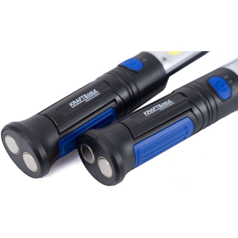 KD3499 to zaawansowana podwójna latarka warsztatowa marki KRAFT&DELE, stworzona z myślą o profesjonalistach oraz użytkownikach wymagających maksymalnej elastyczności oświetlenia. Konstrukcja składająca się z dwóch niezależnych modułów LED 10W pozwala korzystać z nich zarówno połączonych, jak i oddzielnie, w zależności od potrzeb. Latarka oferuje ogromną wszechstronność dzięki łącznikowi umożliwiającemu montaż modułów tyłem do siebie lub w układzie liniowym.