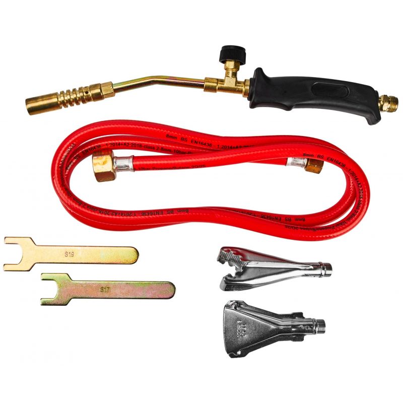 Wysoka temperatura płomienia do 1850°C oraz regulacja przepływu gazu zapewniają pełną kontrolę nad procesem grzania. Solidna rękojeść, wytrzymały wąż zbrojony i bezpieczne zakucia gwarantują długą, bezawaryjną i bezpieczną pracę w każdych warunkach.