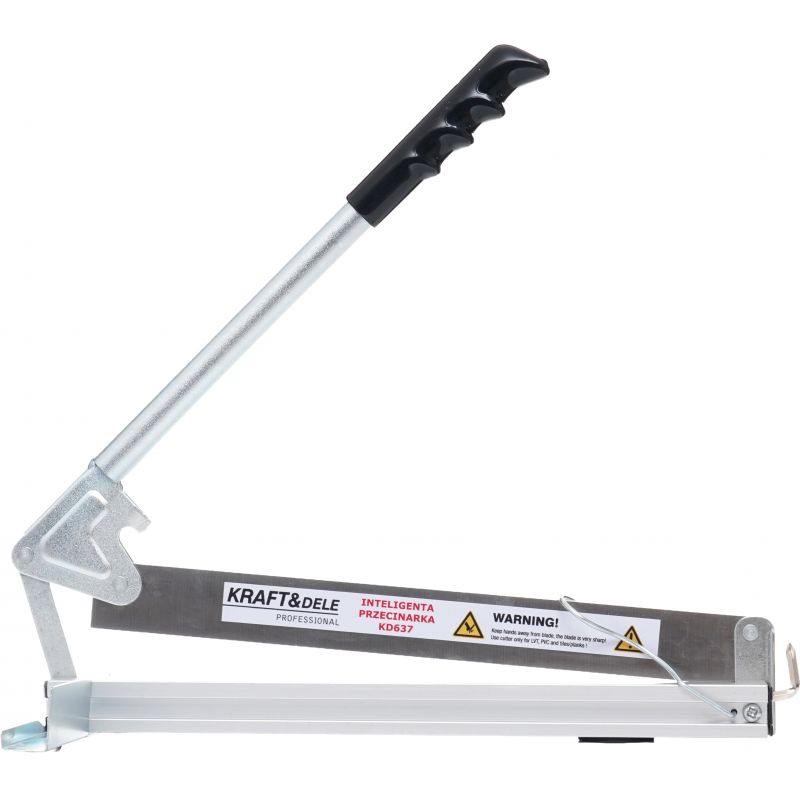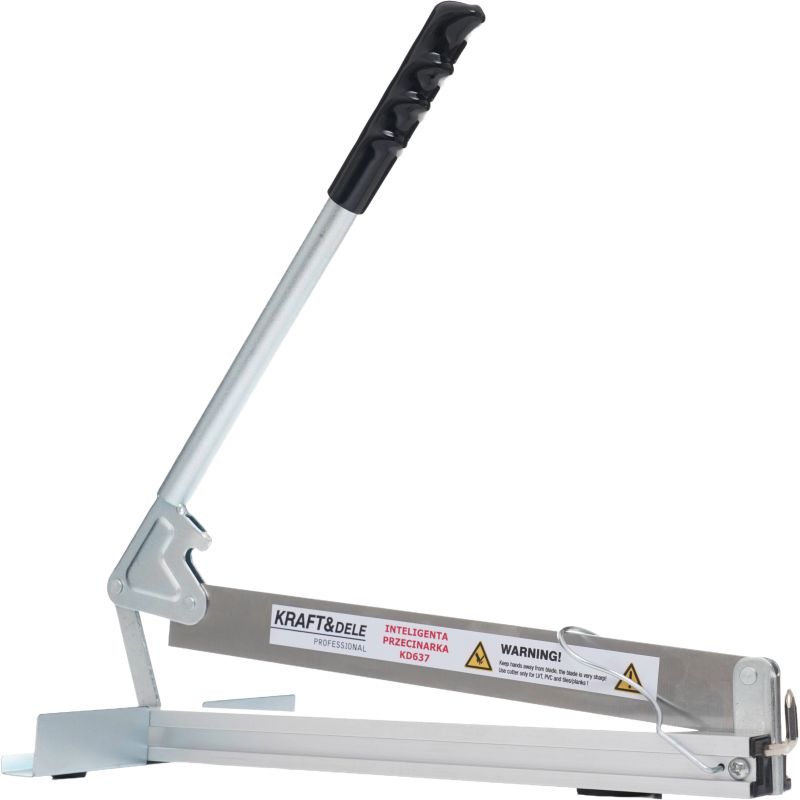 Model KD637 pozwala na bezpyłowe cięcie paneli laminowanych, płyt MDF, PCV, VCT, płytek dywanowych, gumowych oraz innych materiałów, takich jak winyl czy panele elewacyjne. Dzięki solidnej konstrukcji oraz długiej dźwigni użytkownik może uzyskać dużą siłę nacisku przy minimalnym wysiłku. Wbudowany ogranicznik umożliwia wykonywanie precyzyjnych cięć pod kątem 90° i 45°, a także cięć wzdłużnych i pod dowolnym kątem.
