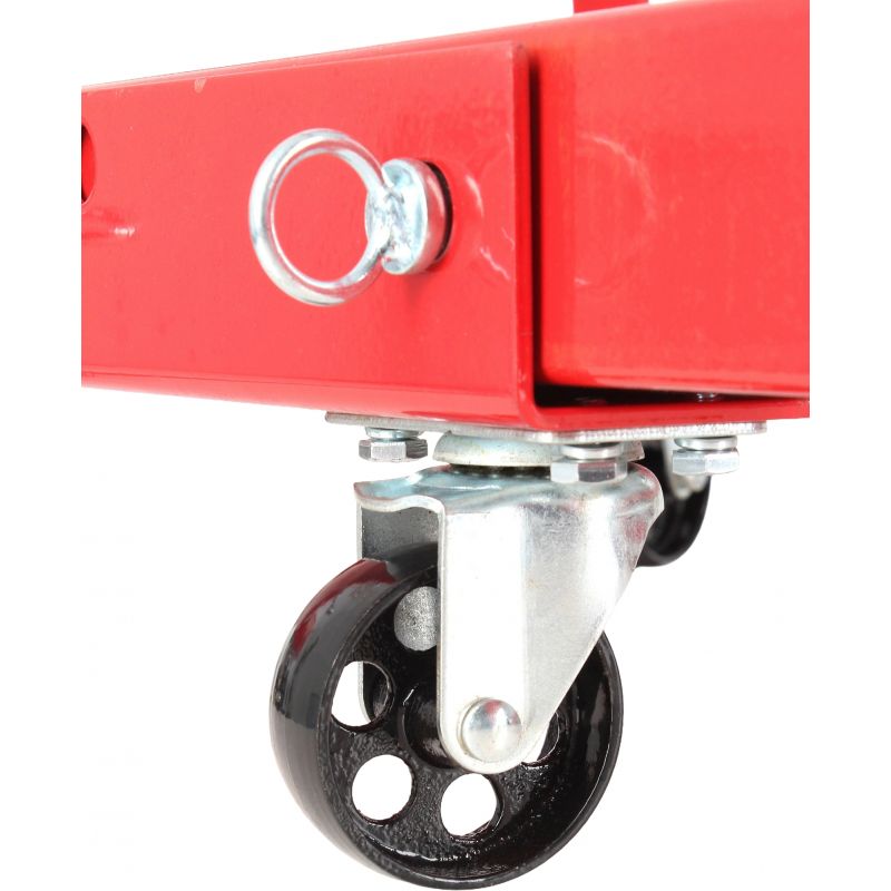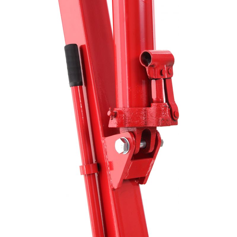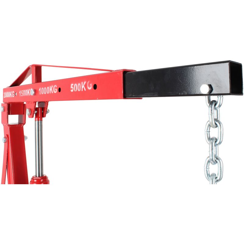 Żuraw wyposażony jest w wysuwane ramię z blokowaniem na 4 poziomach odpowiadających udźwigowi: 500 kg, 1000 kg, 1500 kg oraz 2000 kg. Regulowana długość ramienia pozwala dopasować zasięg pracy do aktualnych potrzeb. Dzięki składanej konstrukcji oraz zastosowaniu trzpieni z zawleczkami podnośnik można szybko złożyć i przemieścić. Po złożeniu zajmuje bardzo mało miejsca. Stabilność i mobilność zapewnia 6 solidnych kółek.