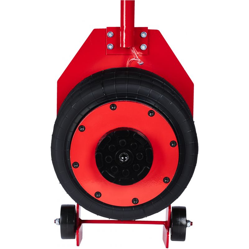 Podnośnik wykonano z bardzo mocnych, odpornych na niekorzystne warunki atmosferyczne materiałów. Prosta konstrukcja oraz kompaktowe rozmiary gwarantują łatwą obsługę i niezawodność. Zintegrowany zawór spustowy z zaworem bezpieczeństwa umożliwia kontrolowane opuszczanie pojazdu, a stalowe koła łożyskowane na tylnej osi ułatwiają szybkie przemieszczanie urządzenia w miejscu pracy.